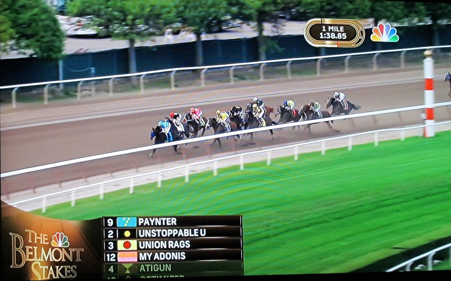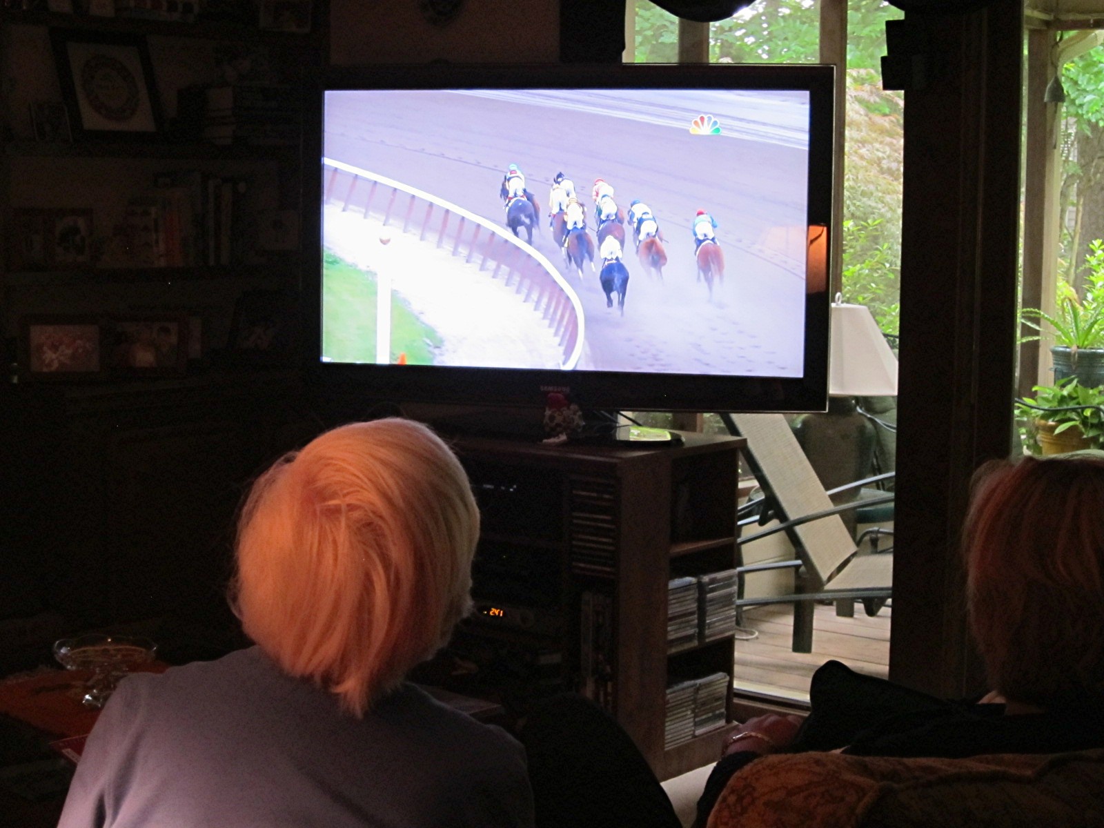 Here are my mother-in-law, M, and my sister-in-law, C, watching the Belmont Stakes. M was quite disappointed that the horse I’ll Have Another was retired at the last minute because of injuries (she claims the Mafia was involved), but moved on to support the remaining headliners. By the time the race was over, M had given us the lowdown on how much the horses cost, what their racing odds were, and the names of their jockeys. She is a wealth of information… and it’s not just the races. H and I have discovered that his mom is well-informed on many of the great sporting events, including the European and World Cups in soccer, Wimbledon Championships, Olympic contenders, and one of her favorites (coming soon), the Tour de France. Who knew?
