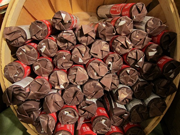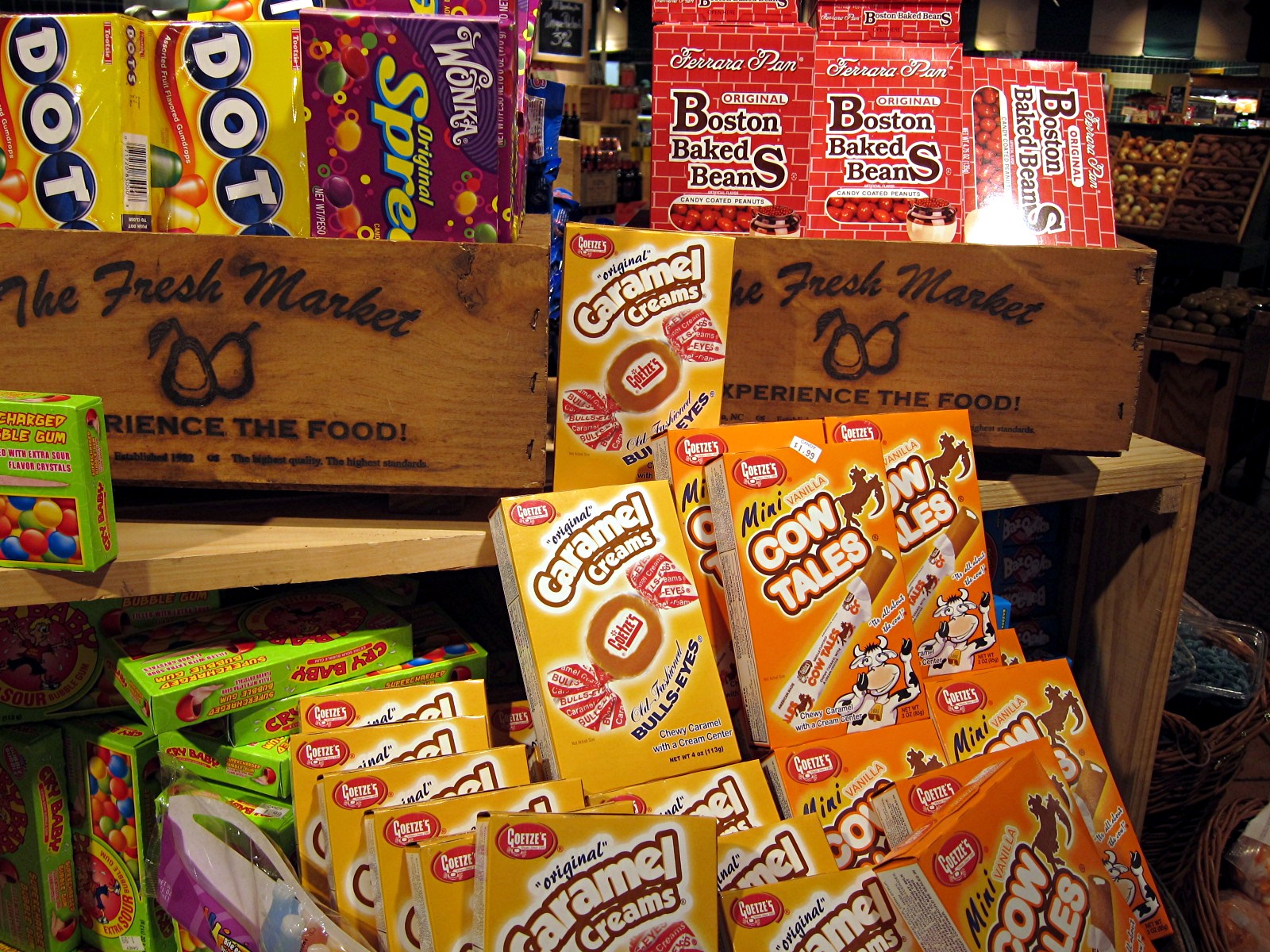 Today we stopped in a local market to buy strawberries and ended up at the Old Fashioned Candy Shop display, where we found ourselves reminiscing about the treats of our childhoods. We came home with a nice variety of fruit, a foot-long Tootsie Roll, and a bar of banana Turkish Taffy.