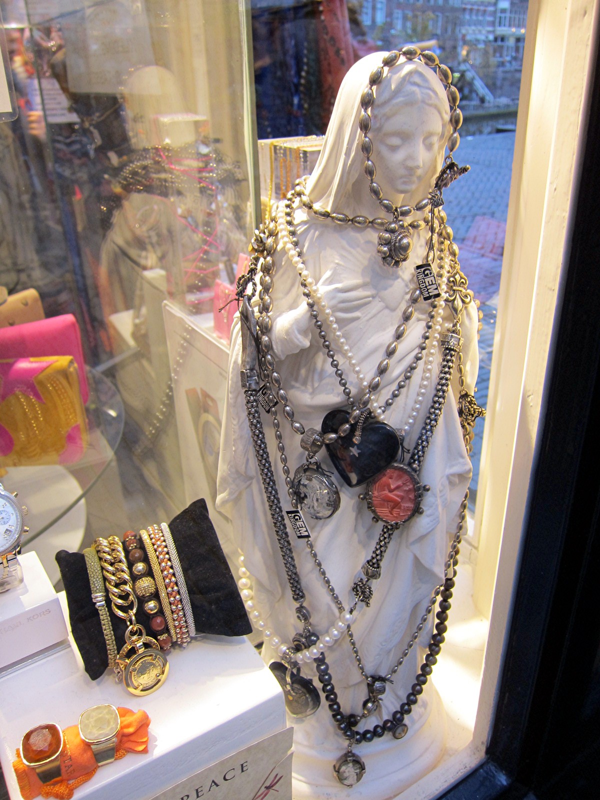 I am not a big shopper, but I love looking at the window displays.  H and I were recently in Amsterdam visiting family, and I have to say that the storefronts there have the most fabulous presentations.  Each window beckons and calls to take a closer look.  Here are just a few that caught my attention.