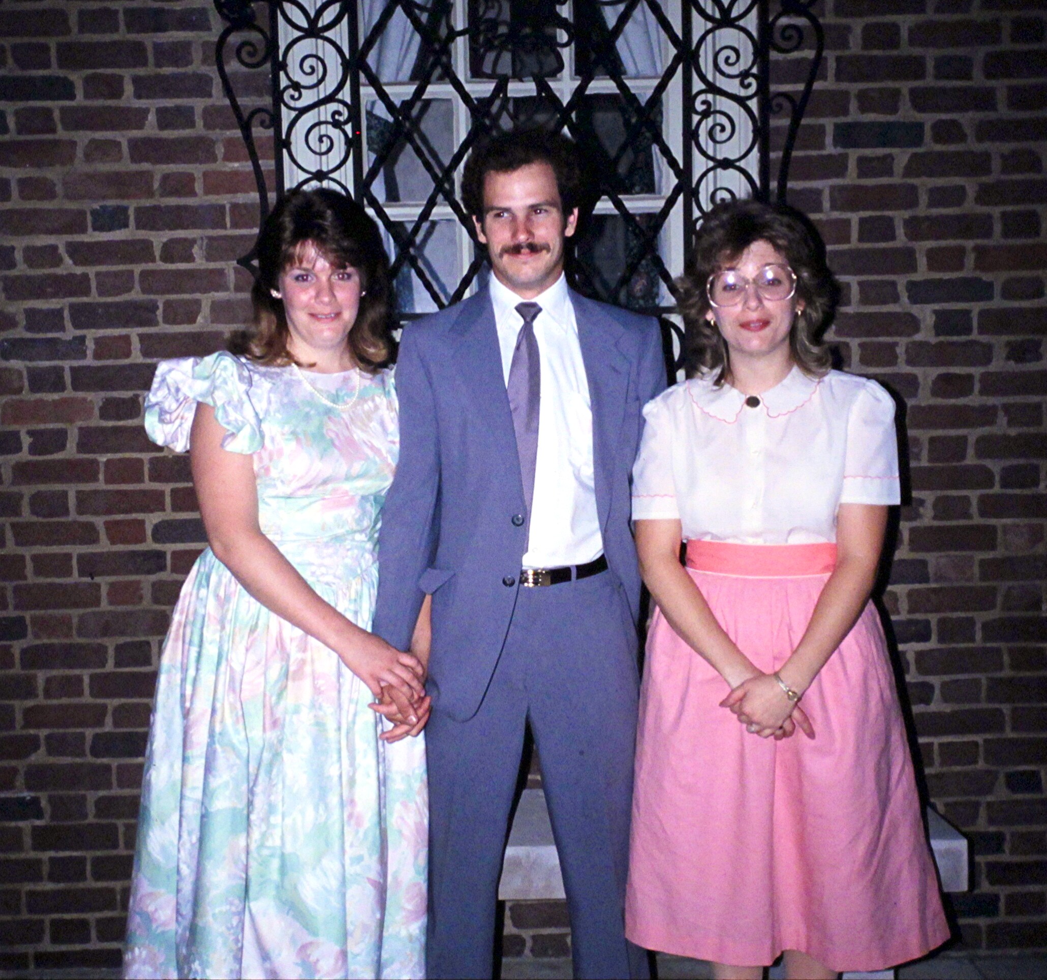 I am standing here with my younger sister L and her beau (now husband) B at the wedding of a family friend quite a few years ago. Thank goodness there was no chance of my outshining the bride on her special day.