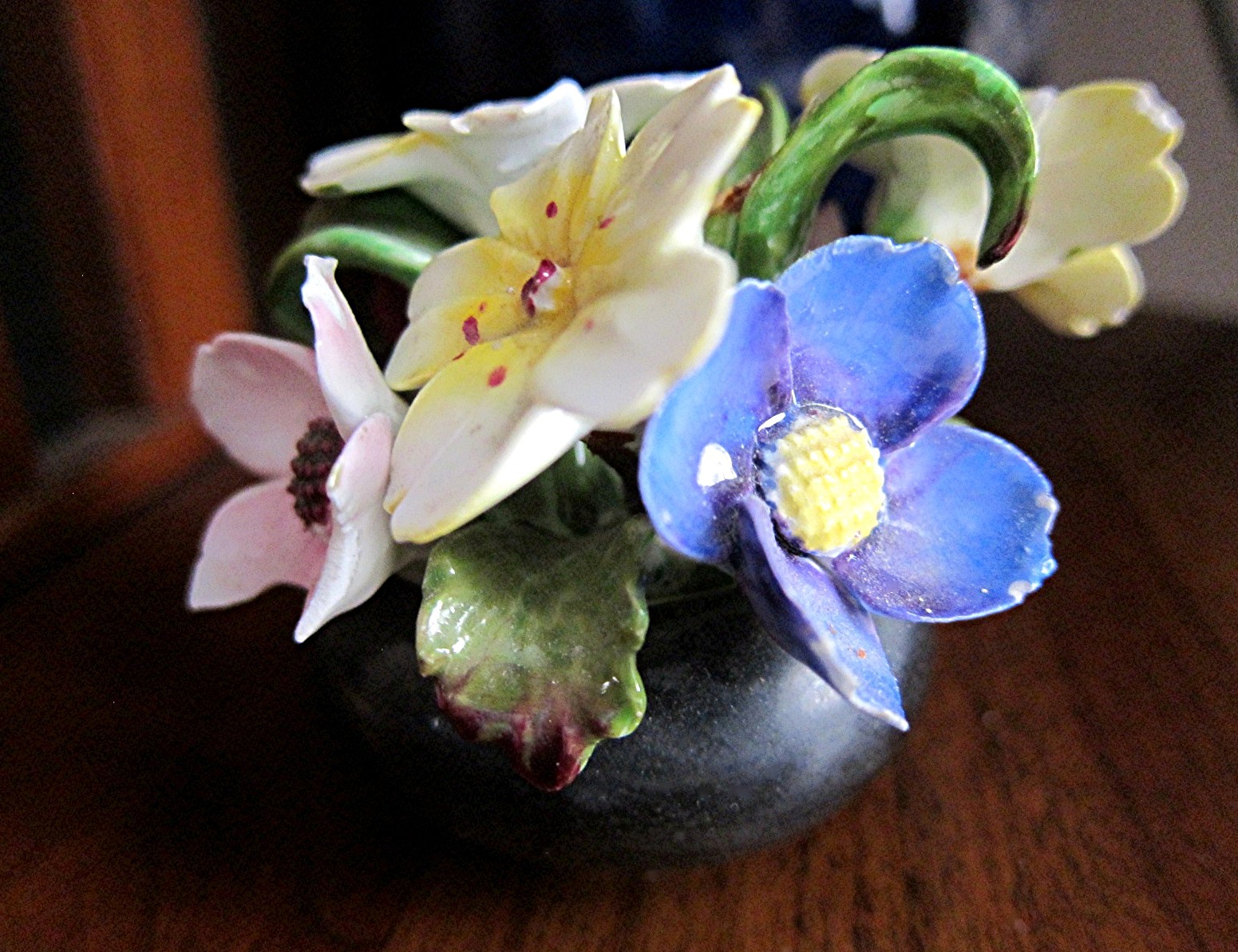 This little ceramic vase, only two inches across, is so tiny that it’s easy to miss on the shelf. Today, though, it caught my eye in the sunlight and helped me remember that spring is near.