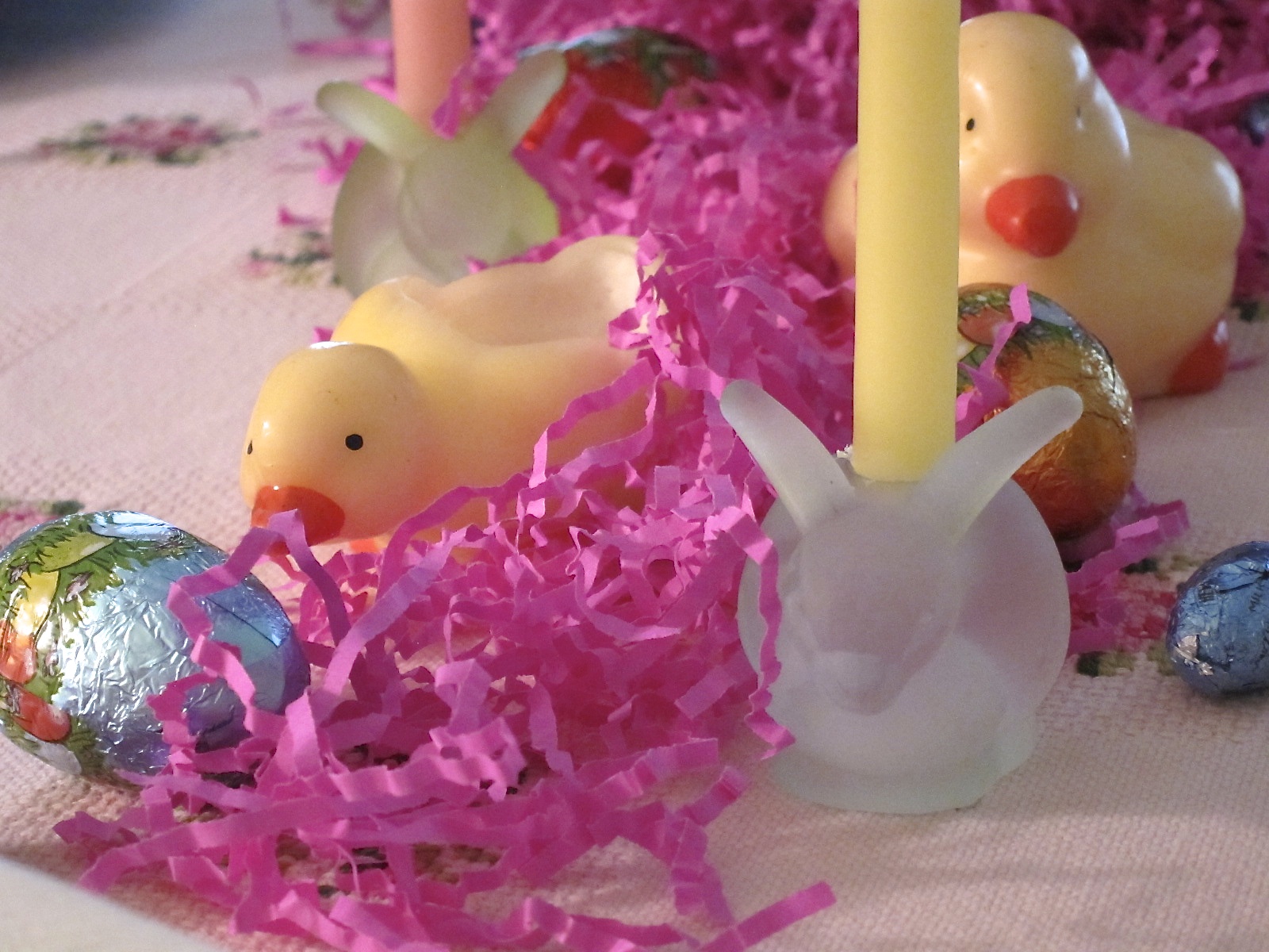 H and I welcome Easter each year with a blend of families and traditions. The tables are rich and inviting with the everyday dishes from my great-aunt mingling with Mom’s wedding china. Hand-embroidered tablecloths sewn by my husband’s aunt brighten the scene. Our own mix of ornamentation, collected over the years, adds another layer of memories. It’s like having all of our loved ones, past and present, here to celebrate with us on this happy occasion.