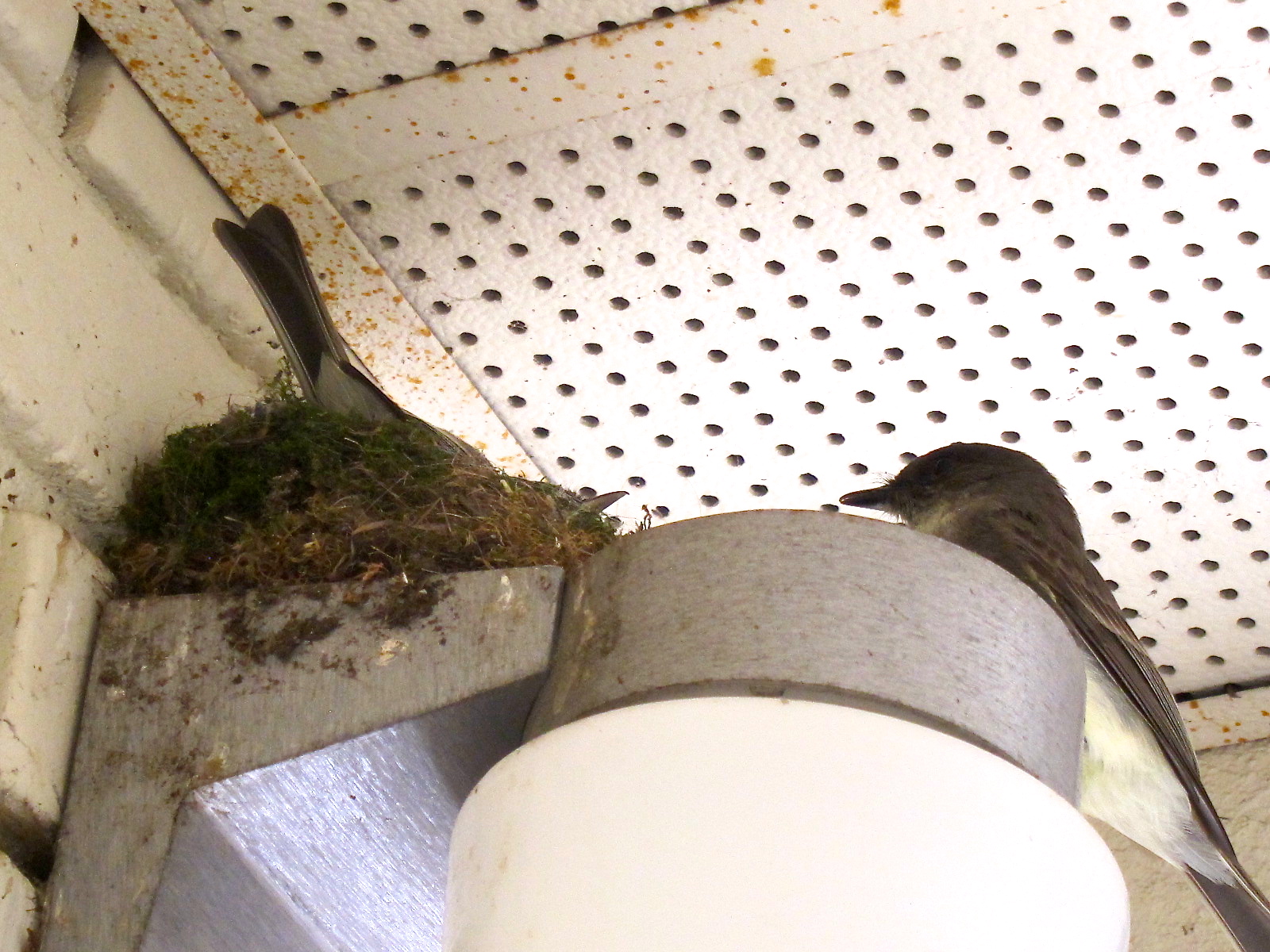 Their summer home has been aired out, refurbished, and plumped up. With a little mud here, some extra moss there, and bits of thread for added color, it’s official: Mr. and Mrs. Phoebe have returned.
