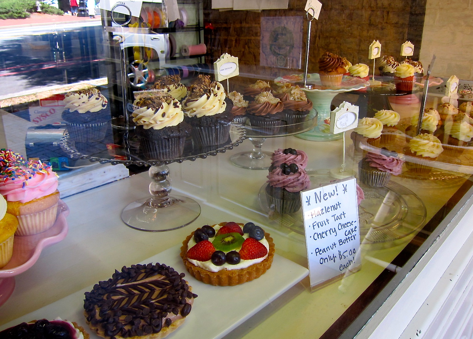 During a recent visit to Marietta Square, H and I couldn’t resist the temptation of this local bakery. The window dressing beckoned us into the shop and the cupcakes did the rest.