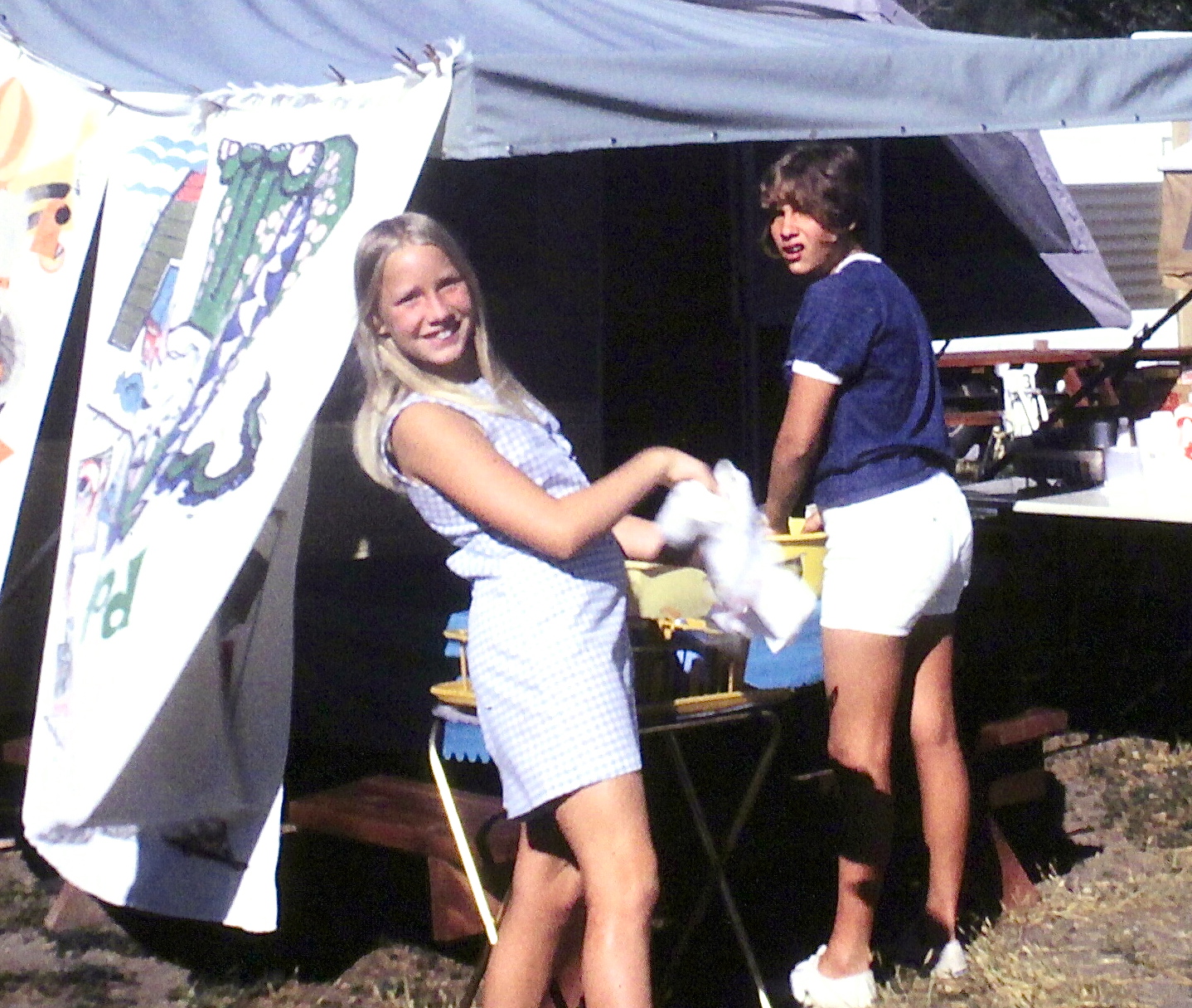 I’m good with the outfit (although the white shorts are blinding). That snarl and shaggy hair combo, however, is too much. (Please… ignore my sister — she’s always happy!)