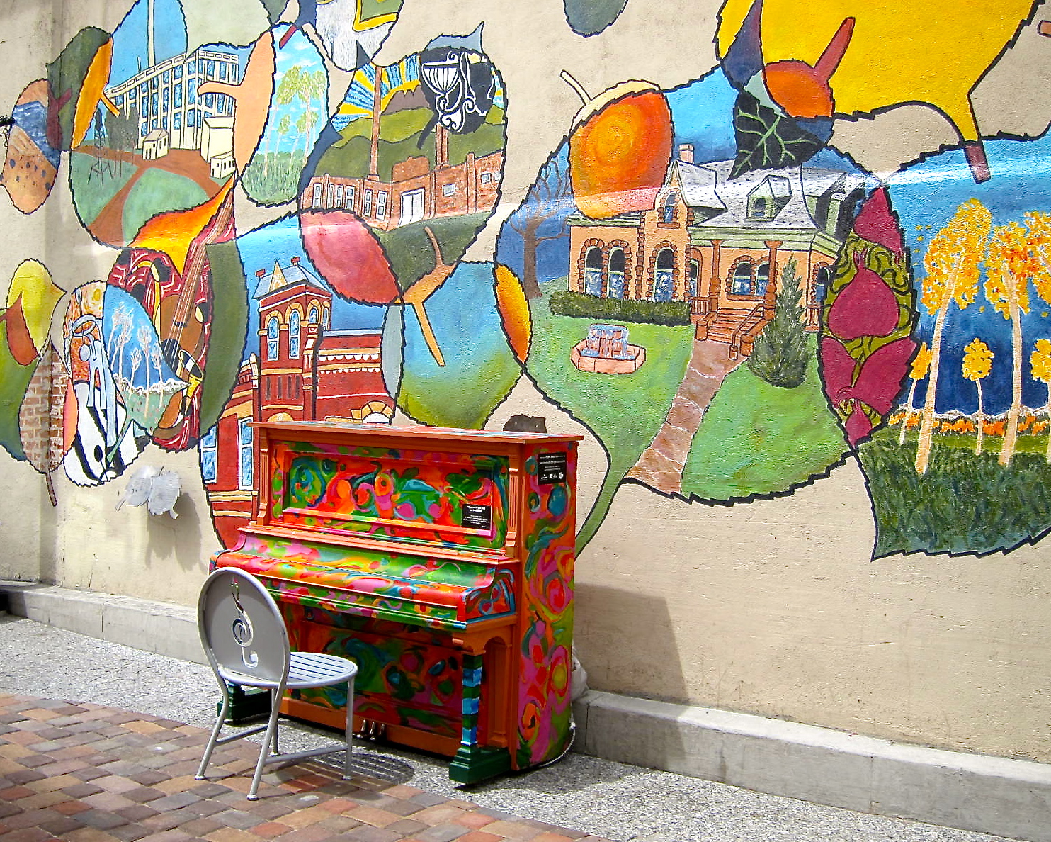 While in Ft. Collins, Colorado, our nephew and his family introduced us to Pianos About Town. This public arts project places pianos painted by local artists in surprise locations throughout the city to be discovered and enjoyed by the public. H played a couple of tunes on this piano while our niece danced to the music.