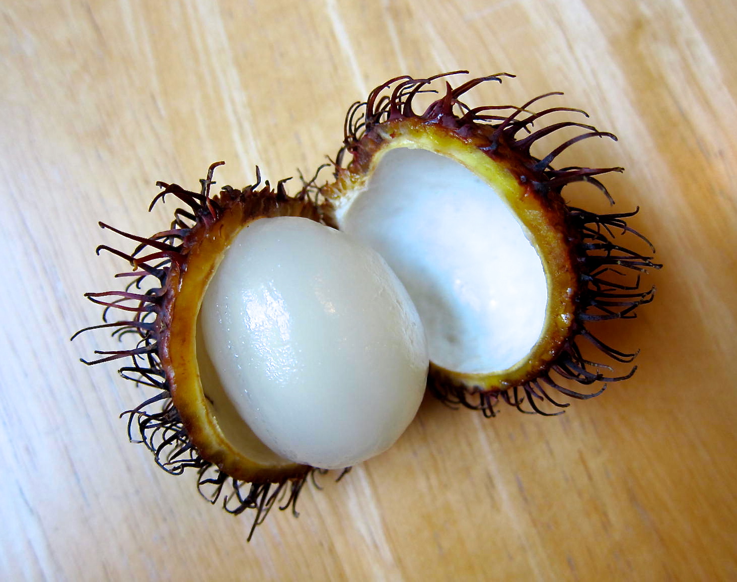 I passed by a display of these Rambutan fruit last week in the market and couldn’t resist buying a few. The edible part has a sweet, tropical flavor, but I finally decided that these babies are more trouble than they’re worth.