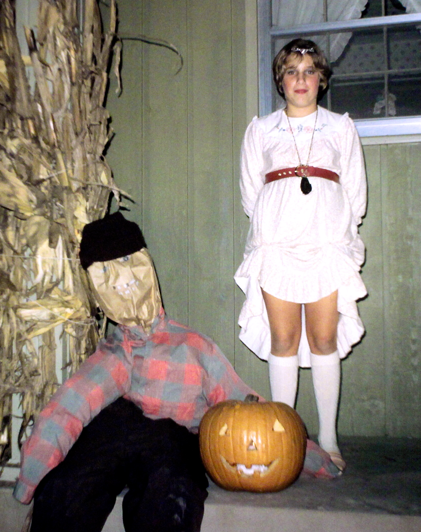 It’s all about Halloween for the month of October. I’m especially proud of this one-of-a-kind ensemble… a nightgown tucked into my undies, white knee highs (always a favorite), clunky red belt, necklace, and a tiara.