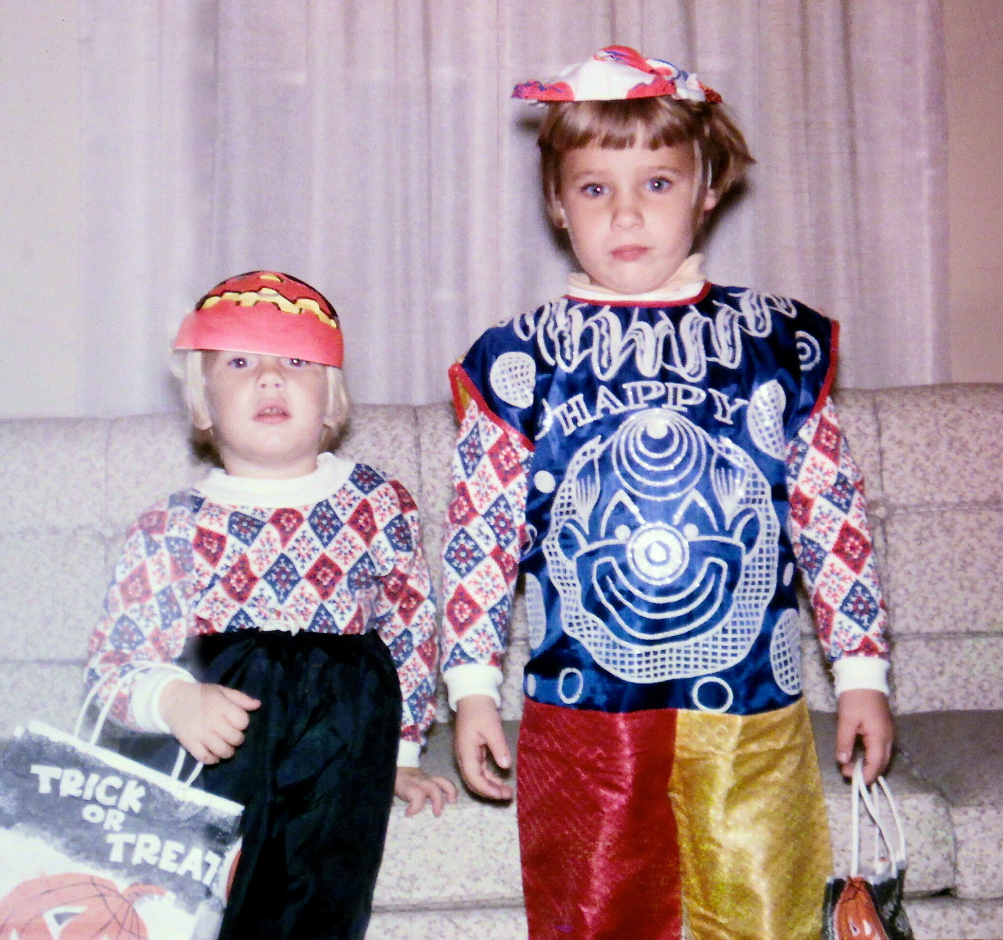 Now THESE are old-school Halloween costumes… pretty tacky and probably highly flammable. My husband H was particularly disturbed by the creepy clown. Trick or Treat!
