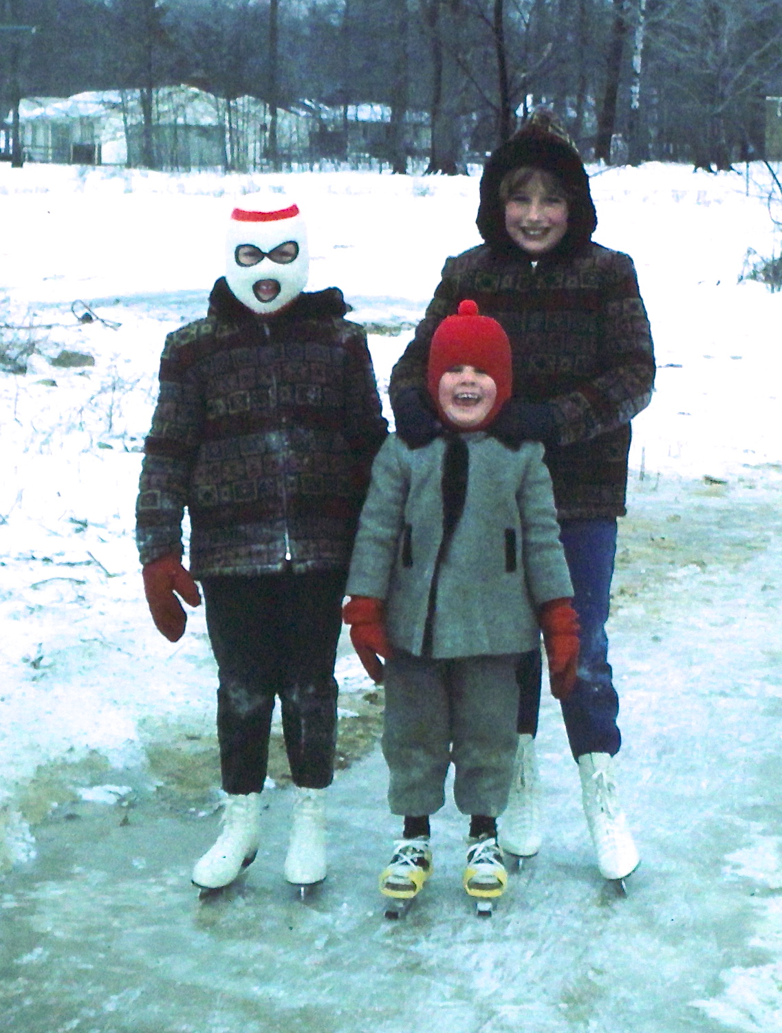In honor of the cold snap that’s been breezing across the eastern US, here’s a family shot of our own personal ice rink… the frozen output of our basement sump pump. (And no, I’m not strangling my little sister, nor is my other sibling planning to rob a bank.)