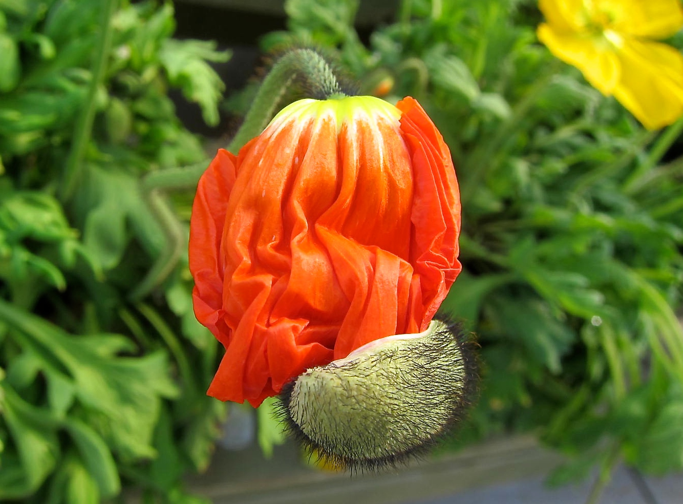 I came upon these flower pods (poppies?) during a recent visit to a local nursery. By the time I finished photographing them, the wind had blown the outside pod covers off. I’ll bet that they were open to their full glory by the end of the day.
