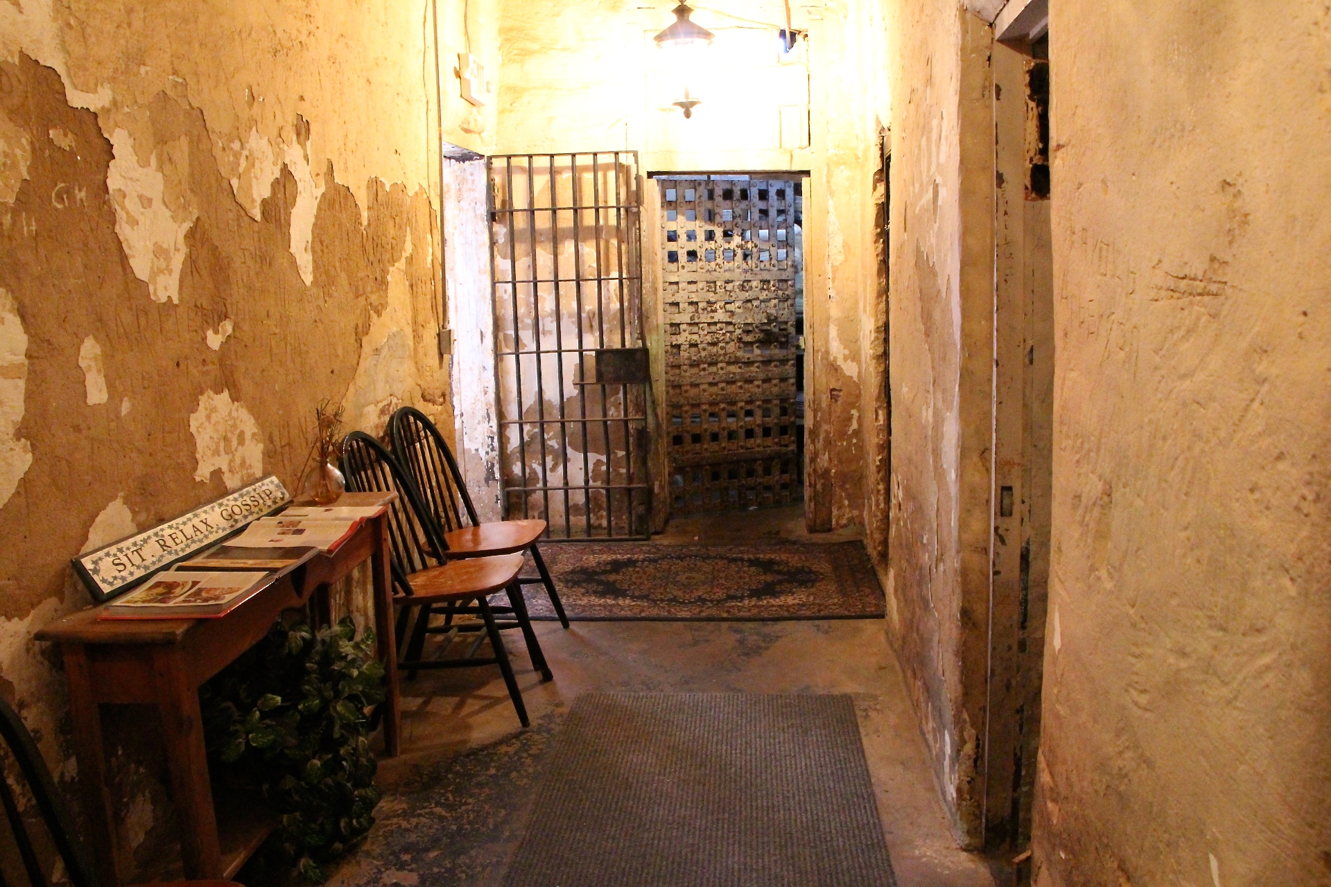 During our recent visit to Dahlonega, Georgia, H and I ate at a delightful little restaurant that just happened to occupy the site of the former city jail. (The first major gold rush in the United Staes occurred in this town, which I’m sure must have been reason enough for effective law enforcement.) Although the pleasant dining area is outside, the path to the restrooms passes right through the jail, with original cells on either side. When you leave, you appreciate the fresh air that much more.