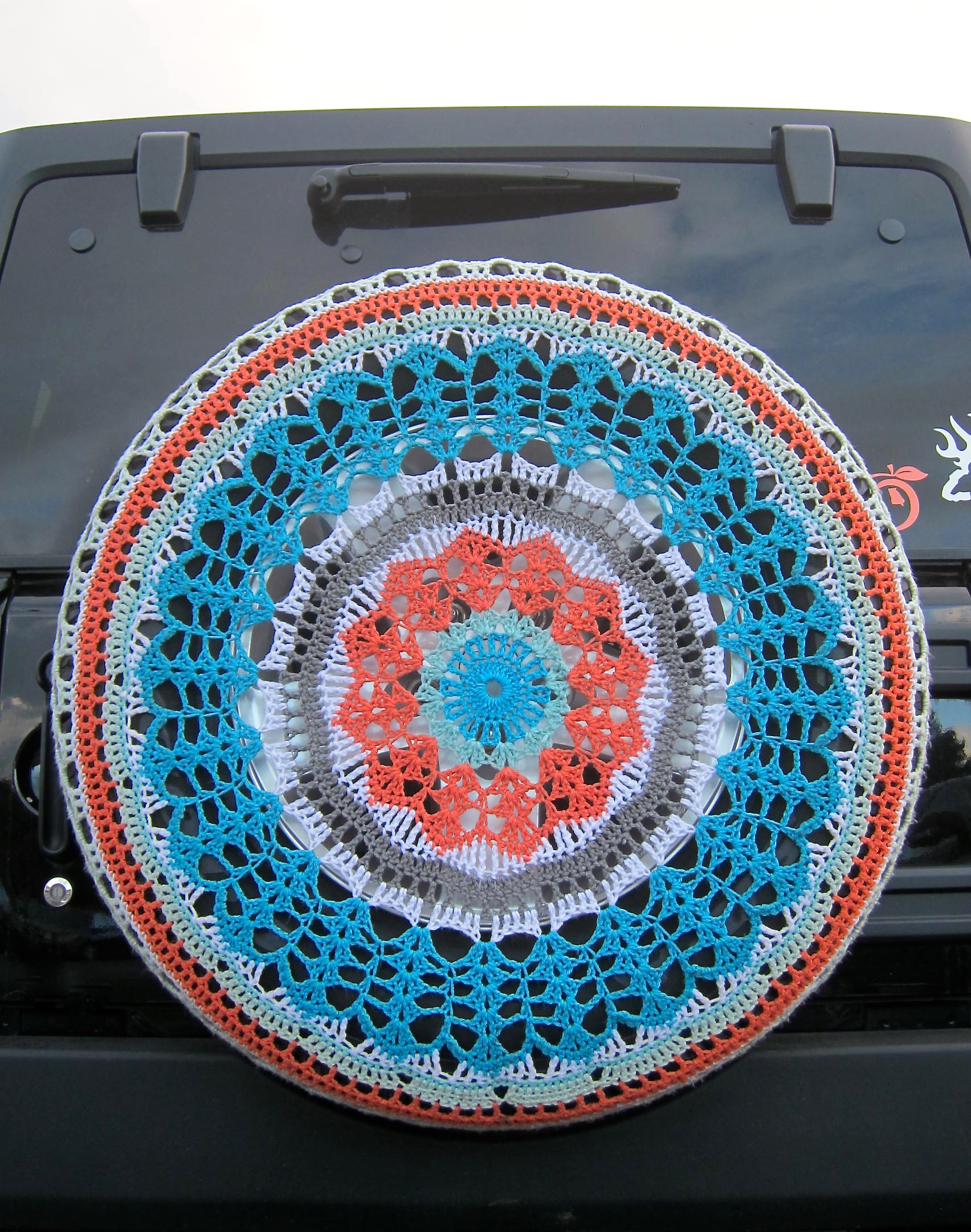 H and I pulled up behind this vehicle with its stylish spare tire cover and just giggled. My grandmother would have had a field day crocheting one of these.