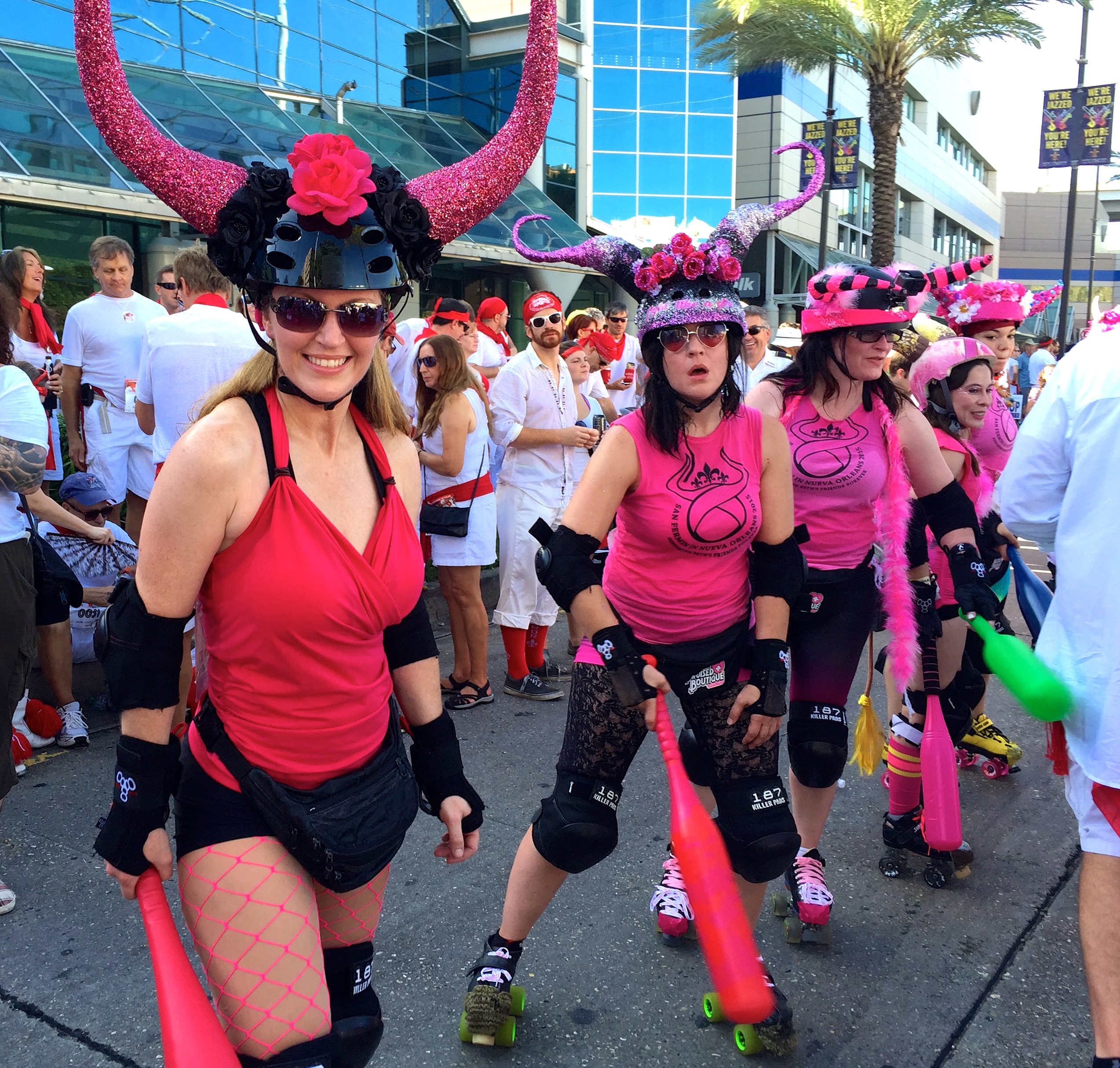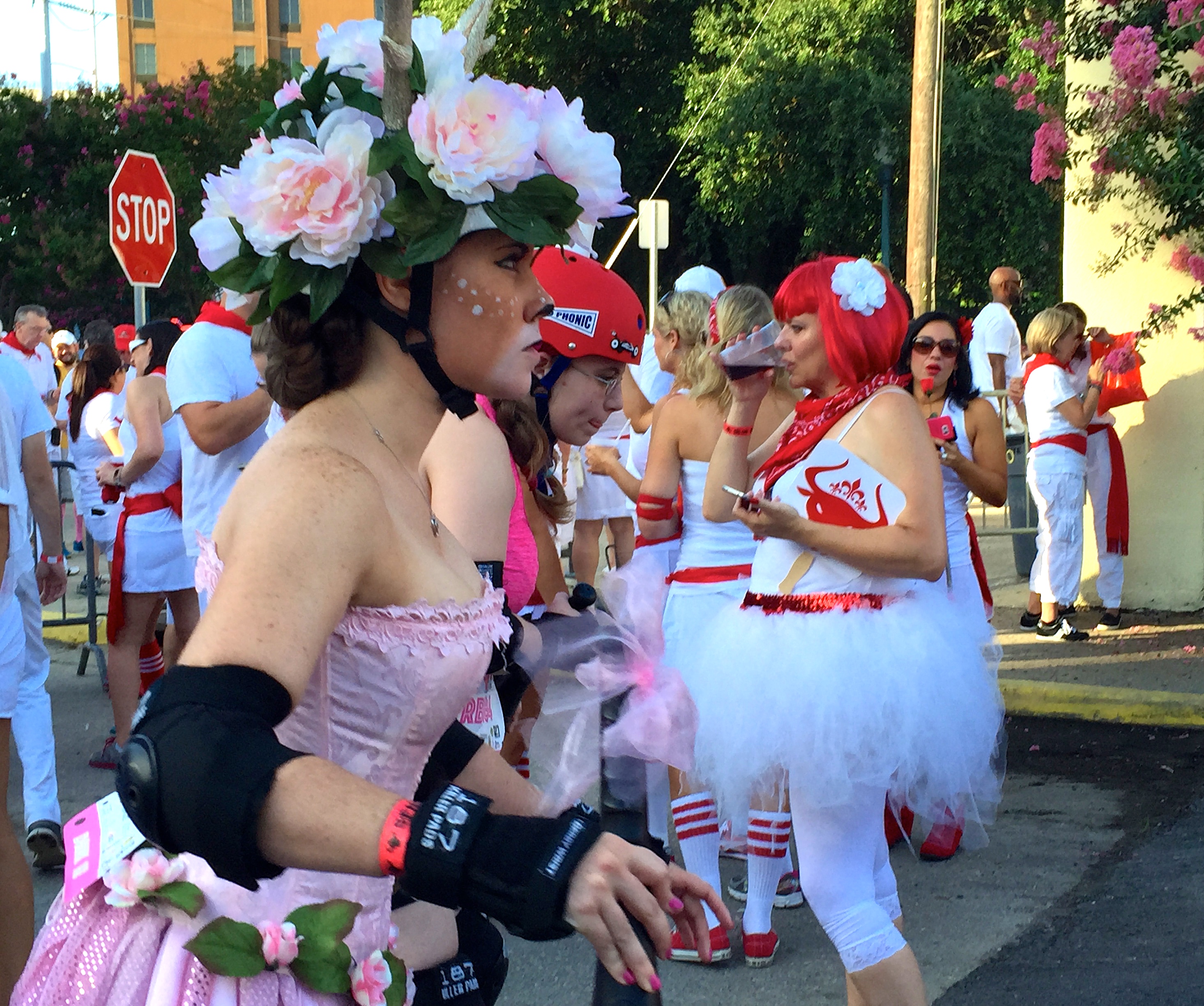 This past weekend I once again joined friends in Louisiana for the 9th Annual Running of the Bulls at San Fermin in Nueva Orleans. Dressed in the traditional white with red sashes, we “ran” through the one-mile route while chased by “bulls” (members of various women’s roller derby leagues from across the country). Not only was it crazy fun, but the event supported two charities.