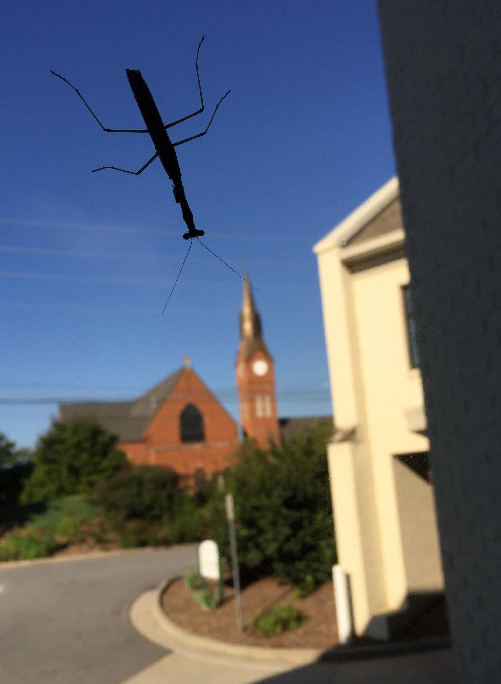 Last week at work, I caught this little guy peering in at me as I climbed the stairs. The window is huge and I don’t know where it was heading, but I’m sure there was a plan.