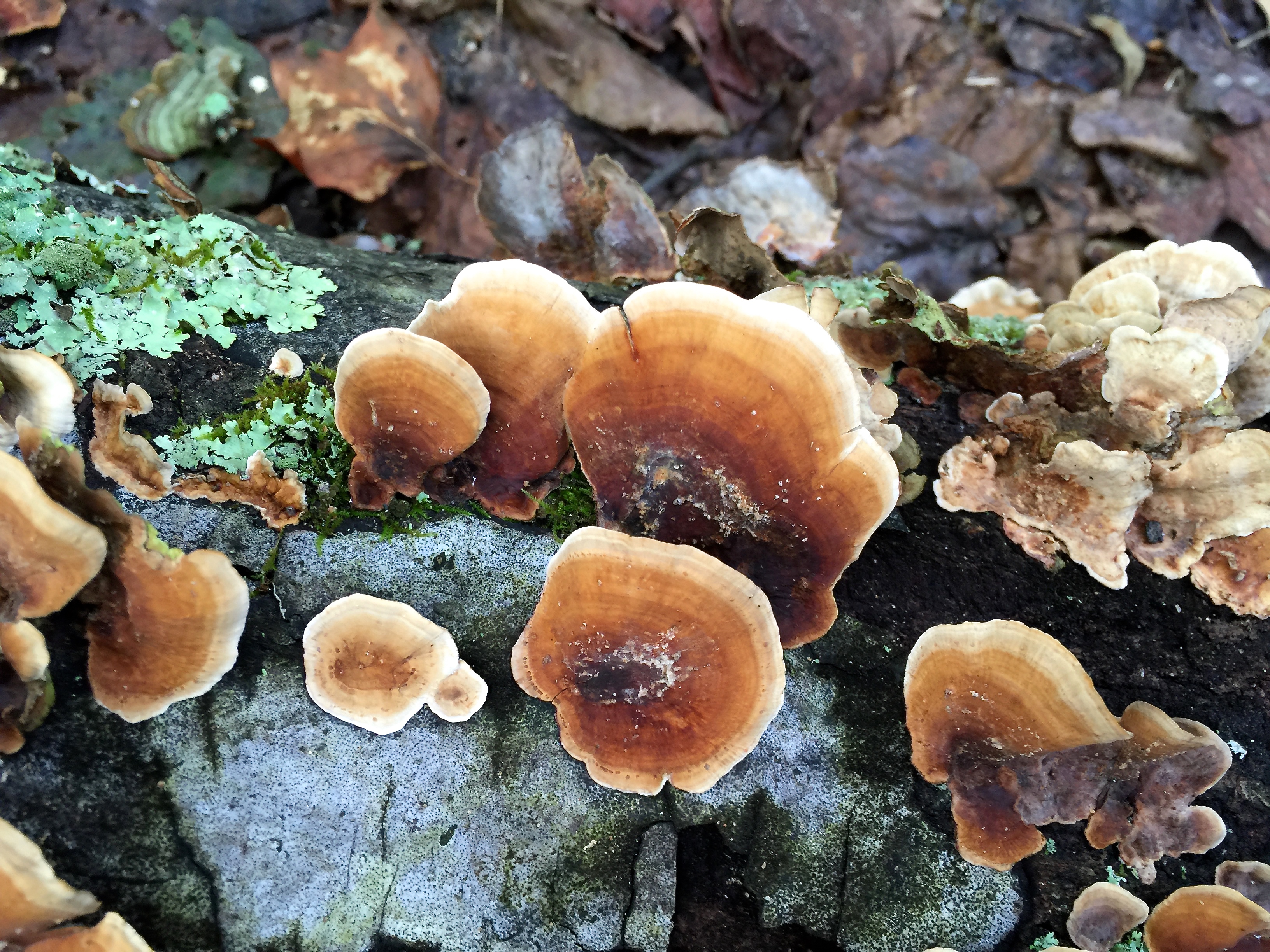 H and I were enjoying a morning walk through the park when we were stopped in our tracks by these stunning fungi. While they may be typical of woodsy growths, I can’t remember seeing such splendid colors and patterning.